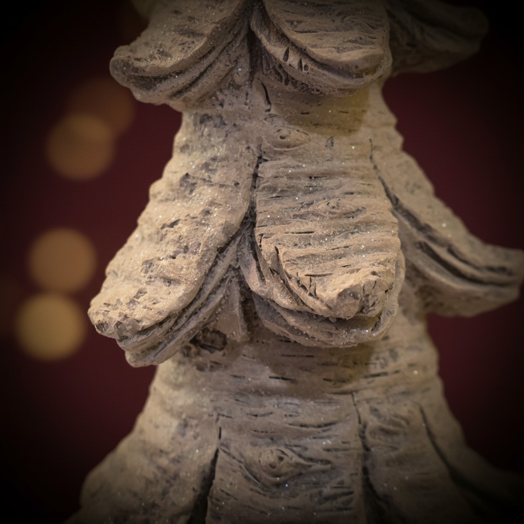 A riqueza de textura e o formato alongado fazem desta árvore uma peça de destaque, perfeita para composições em aparadores, mesas ou como complemento em cenários com outras árvores decorativas.
