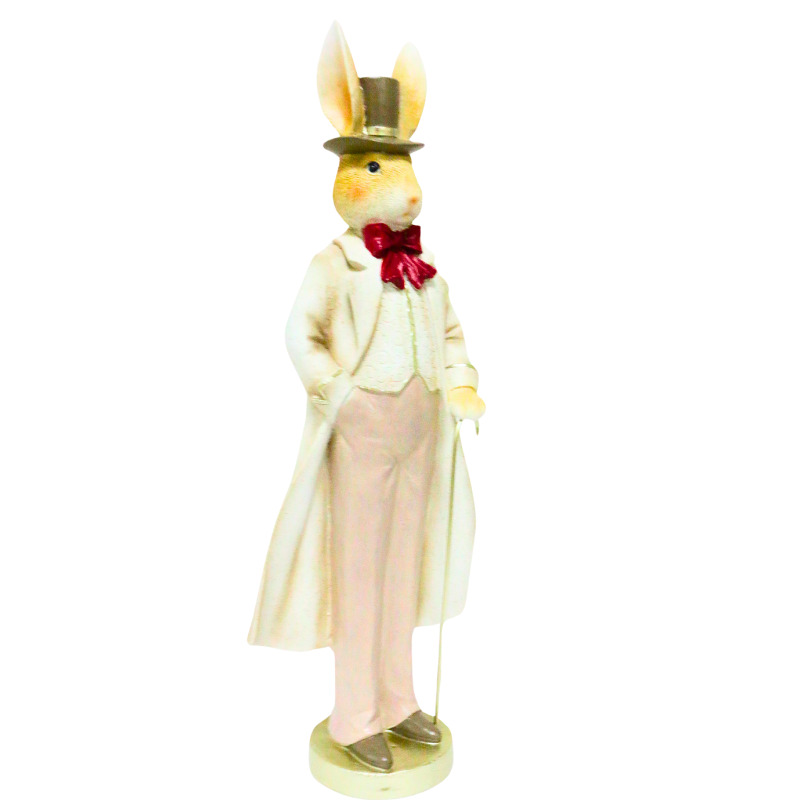 Formato: Coelho em pé com traje clássico, chapéu e bengala