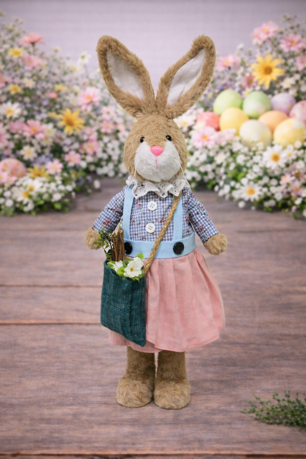O Coelho de Tecido Menina 56 cm é uma peça decorativa delicada e encantadora, ideal para compor cenários de Páscoa com um toque romântico e acolhedor. Produzido em tecido macio, apresenta uma paleta suave em tons de marrom, rosa e azul claro, que transmite leveza e charme à decoração.