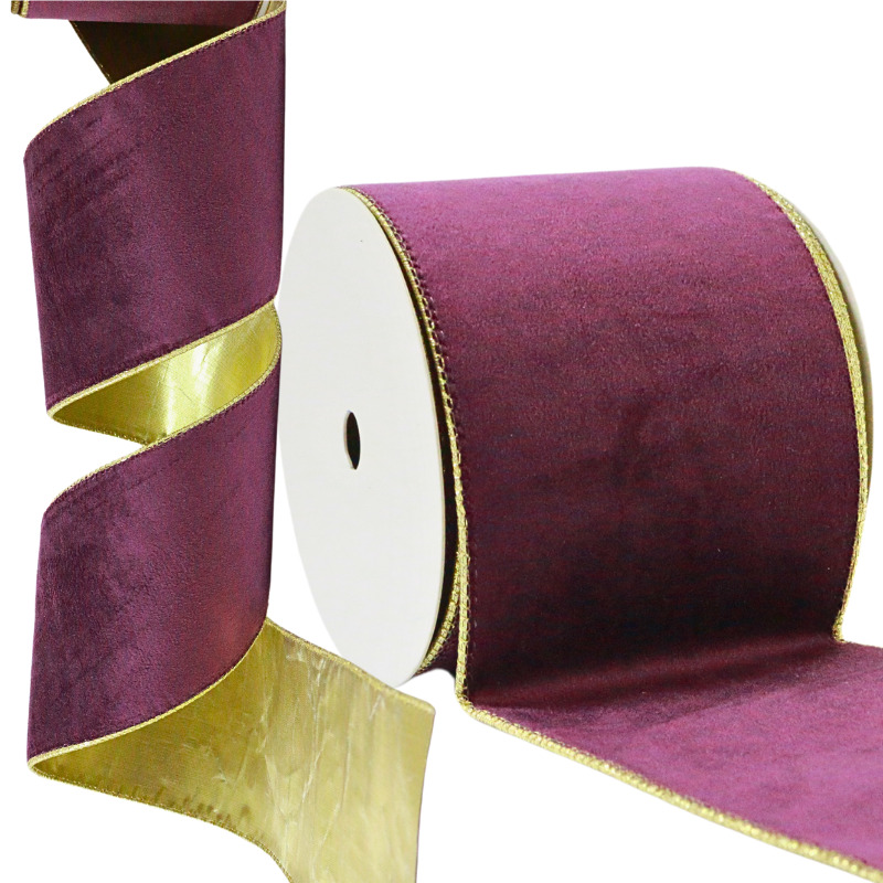 Fita Aramada 10cm 9,14m Veludo Dupla Face Roxa