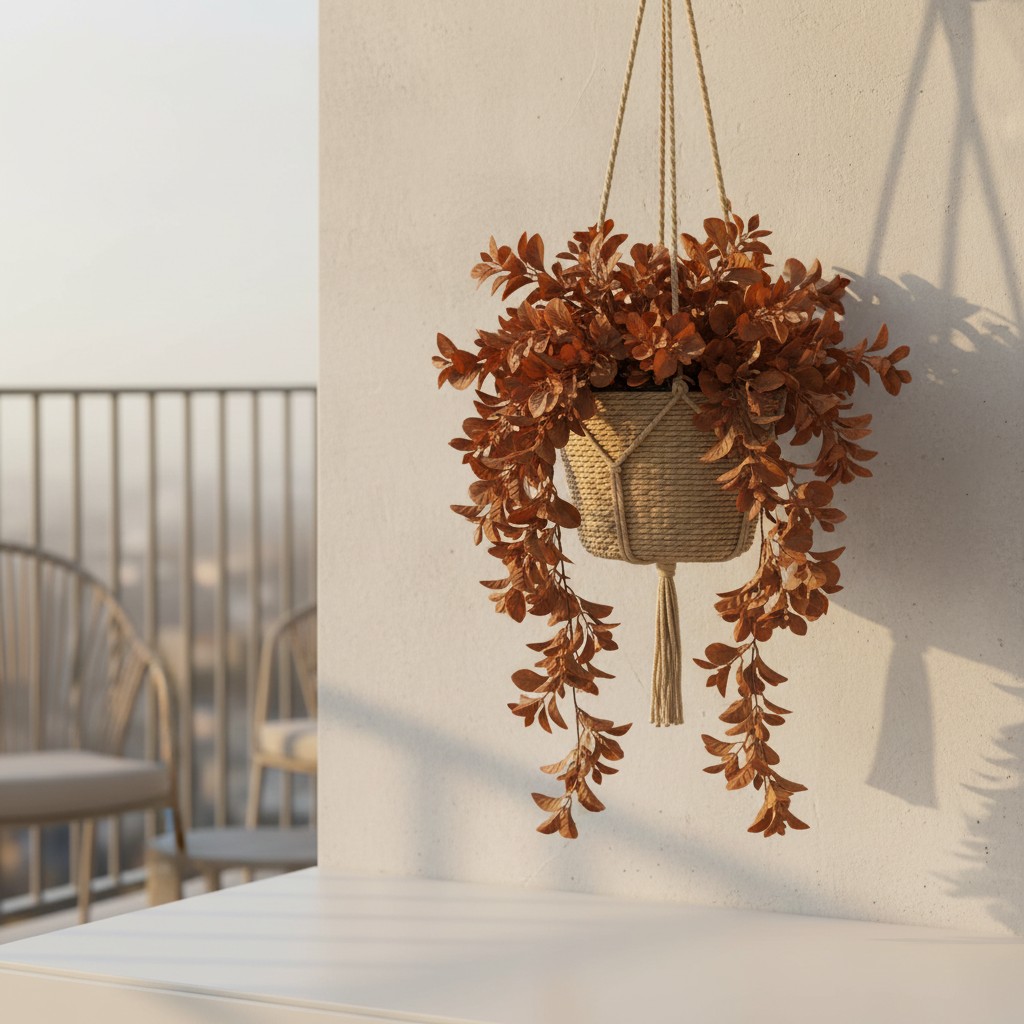 Ideal para contrastar com folhagens verdes ou compor paletas mais neutras e aconchegantes, ele se destaca em vasos suspensos, prateleiras e arranjos contemporâneos. Seu visual orgânico, aliado à tonalidade marcante, transforma o ambiente com um toque moderno e acolhedor.