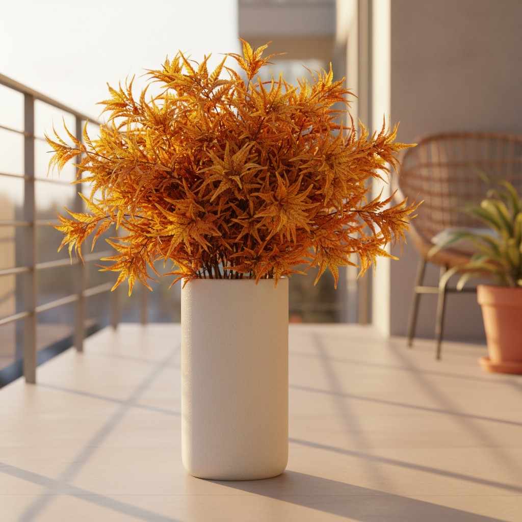 Com silhueta esguia e folhas delicadamente recortadas, a Haste Folhas é perfeita para criar composições mais verticais e sofisticadas. Seu desenho leve traz movimento e naturalidade ao arranjo, enquanto a altura de 90cm ajuda a alongar e valorizar a composição.