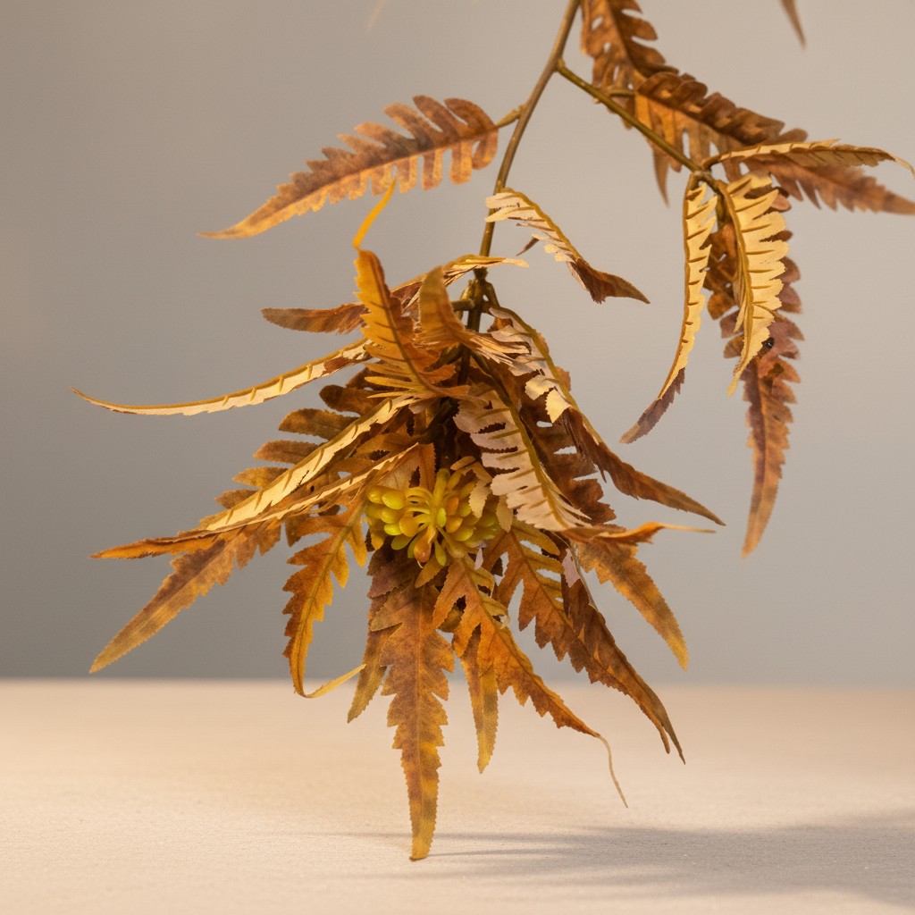 Com silhueta esguia e folhas delicadamente recortadas, a Haste Folhas é perfeita para criar composições mais verticais e sofisticadas. Seu desenho leve traz movimento e naturalidade ao arranjo, enquanto a altura de 90cm ajuda a alongar e valorizar a composição.