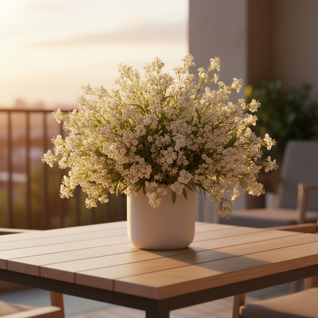 Versátil, o gypso é ideal para vasos solitários, arranjos permanentes mais volumosos ou como complemento para outras flores e folhagens. Seu visual neutro se adapta facilmente a diferentes estilos de decoração, do minimalista ao romântico, sendo uma escolha certeira para uso durante todo o ano.