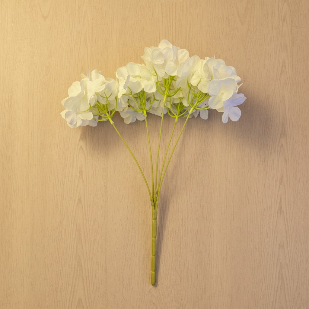 Sua tonalidade suave e acabamento realista fazem desta hortênsia uma escolha perfeita para composições refinadas, seja em vasos solitários, centros de mesa ou arranjos maiores. Ideal para quem busca beleza duradoura com um toque clássico e sofisticado.