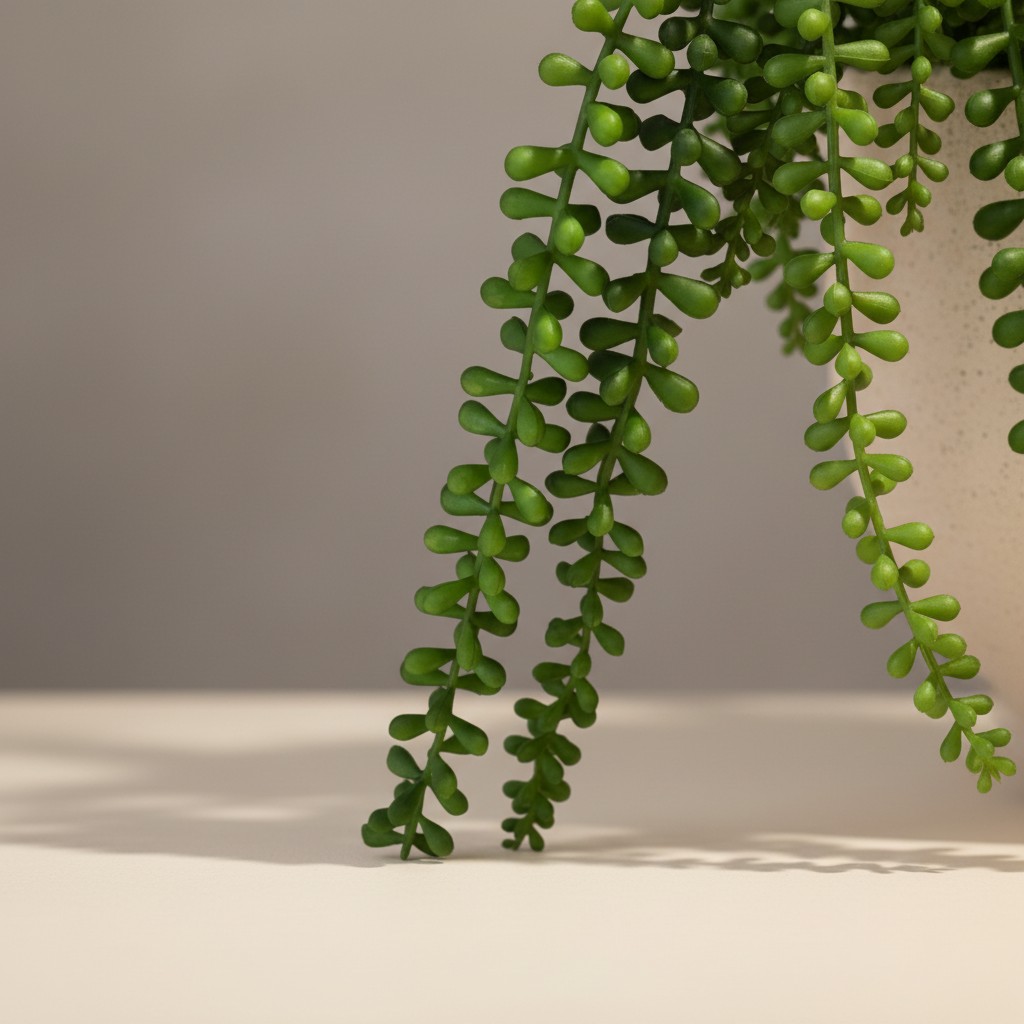 Delicado e contemporâneo, o Pendente Dedo de Moça é a escolha ideal para trazer leveza e movimento às composições com folhagens. Seus ramos finos e alongados, com pequenas folhas em formato arredondado, criam um caimento fluido e elegante, perfeito para vasos suspensos e arranjos verticais.