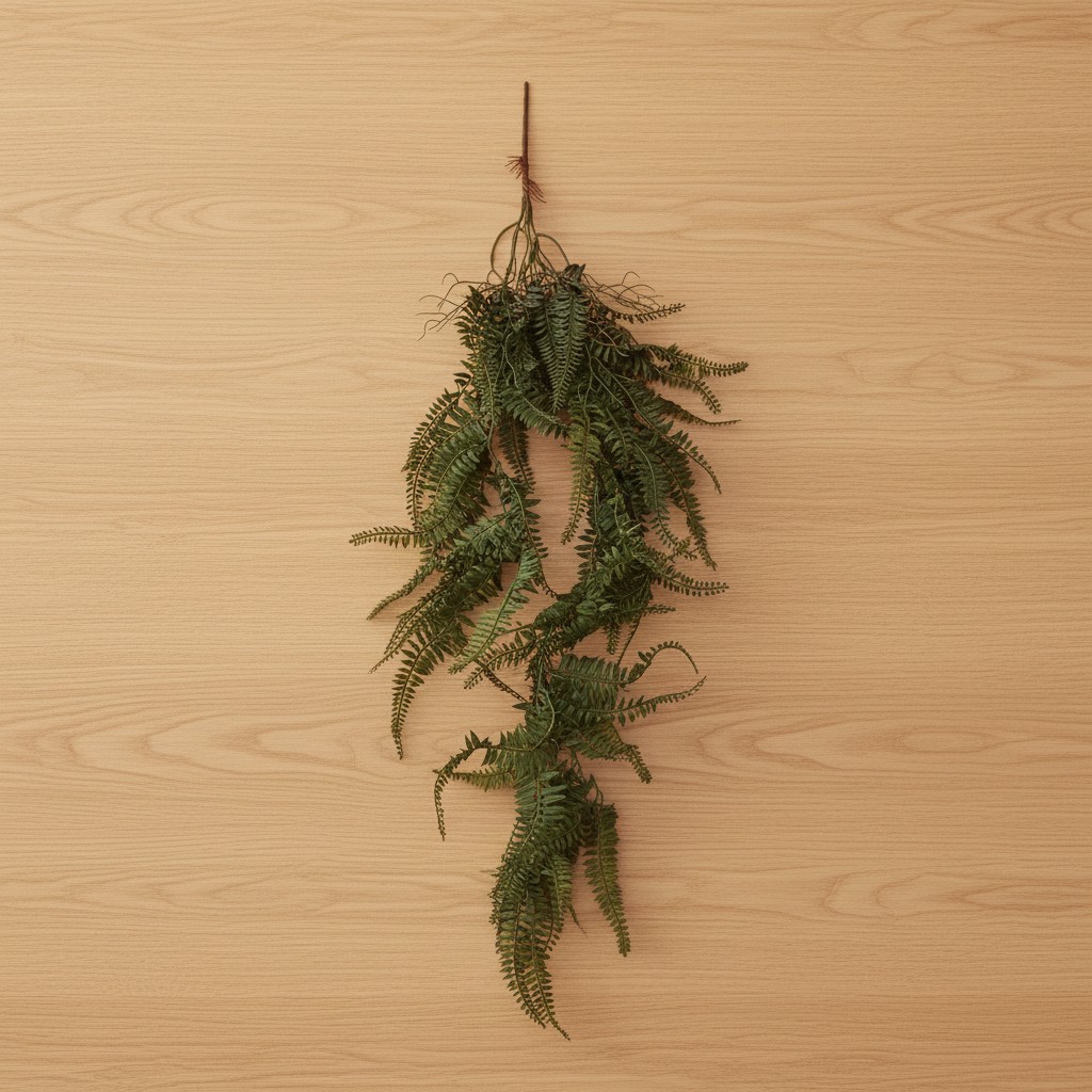 A combinação de folhas detalhadas em diferentes direções cria um efeito volumoso e orgânico, ideal para preencher vasos suspensos com elegância. Seu visual atemporal se adapta facilmente a diversos estilos ¿¿¿ do contemporâneo ao naturalista ¿¿¿ sempre agregando frescor e aconchego.
