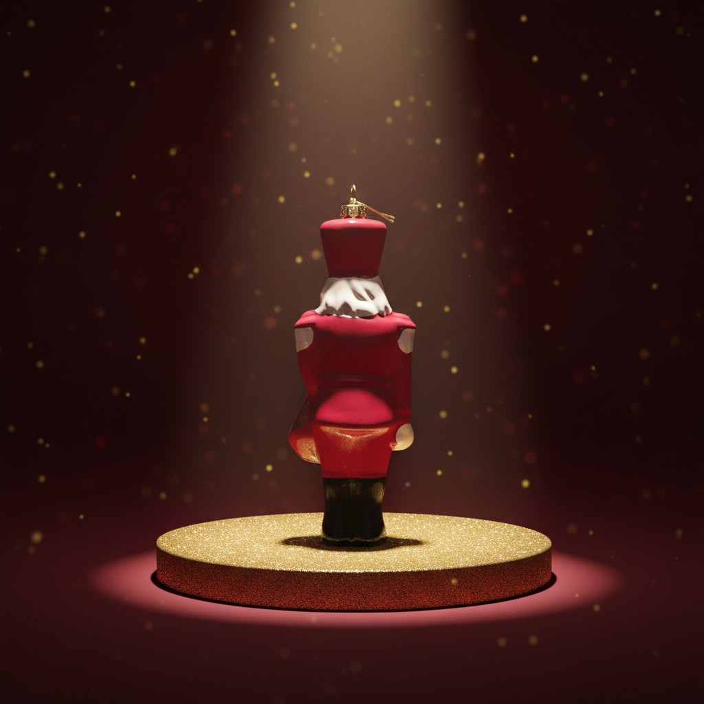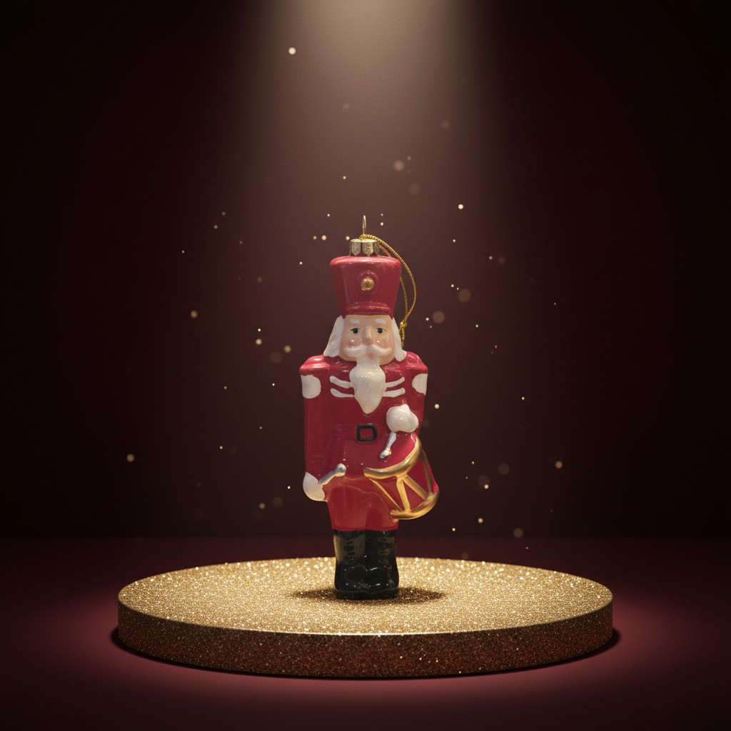 O acabamento em vidro confere brilho e leveza ao ornamento, criando pontos de luz que enriquecem a decoração da árvore. Seu design expressivo e rico em detalhes torna essa peça ideal para composições temáticas, especialmente dentro da proposta Nutcracker Royale.